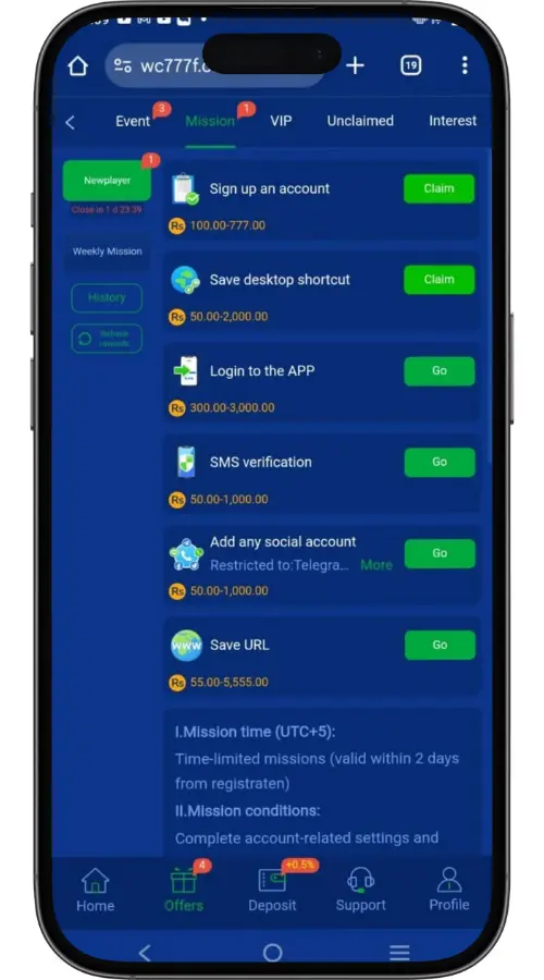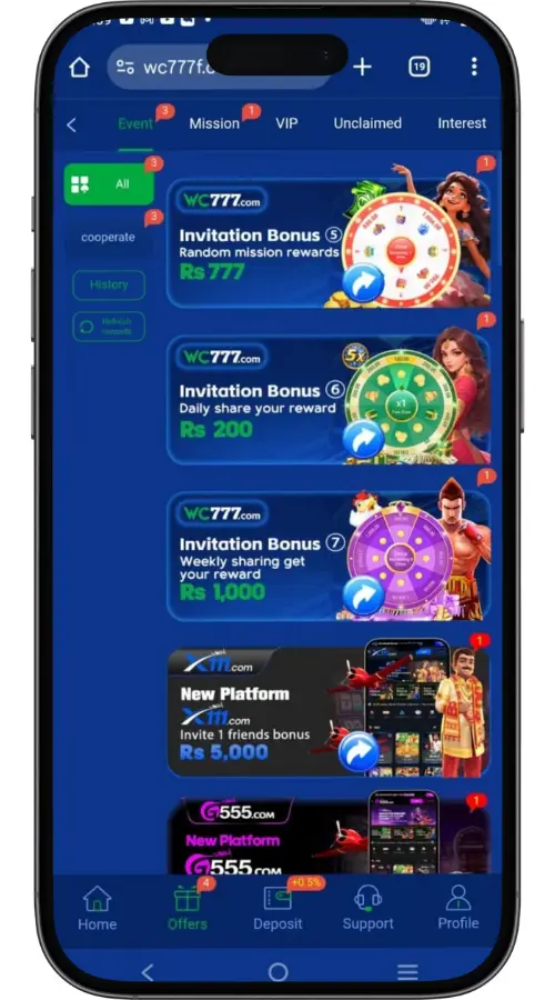 WC777 Game offers a variety of promotions and bonuses designed to boost your earnings and make gameplay more fun. New users can enjoy welcome bonuses, daily login rewards, free spins, and seasonal events. Referral programs and special tournaments give additional opportunities to earn extra cash. These promotions ensure both new and experienced players stay engaged and rewarded.