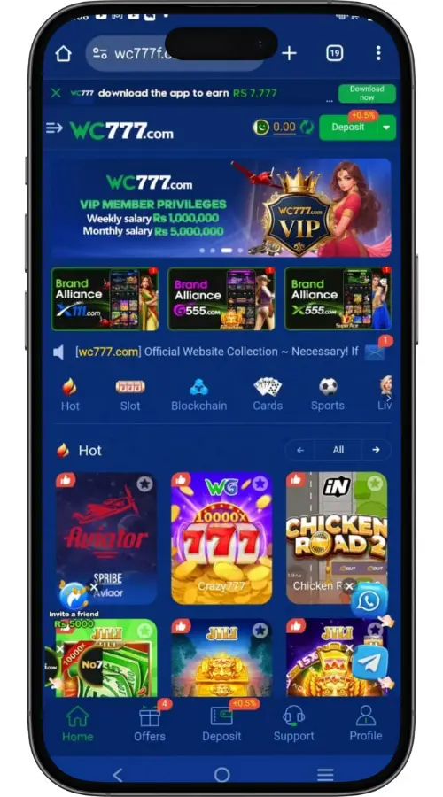 Wc777 App is simply the Android application file that allows you to download and use the gaming platform directly on your mobile. It removes the need to open a browser and gives instant access to all games and features. The file is lightweight and runs smoothly even on phones with lower RAM or older versions of Android.